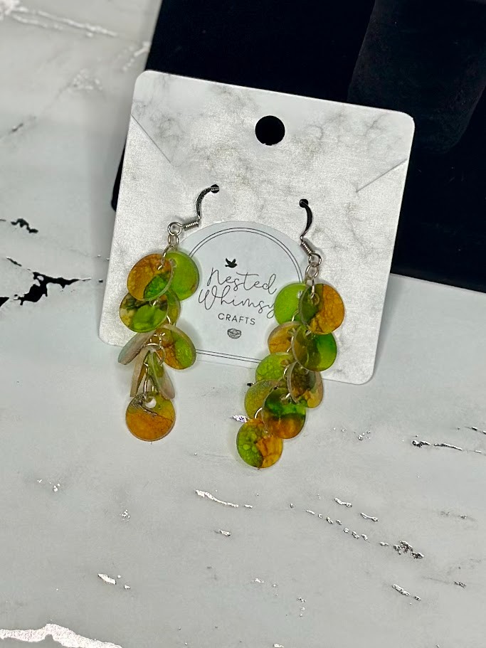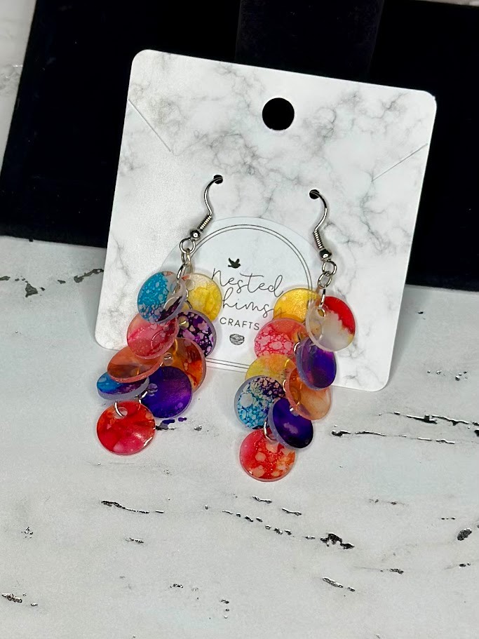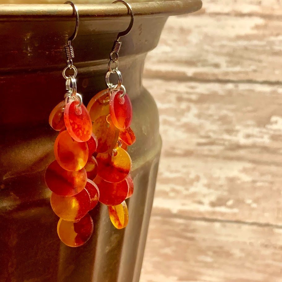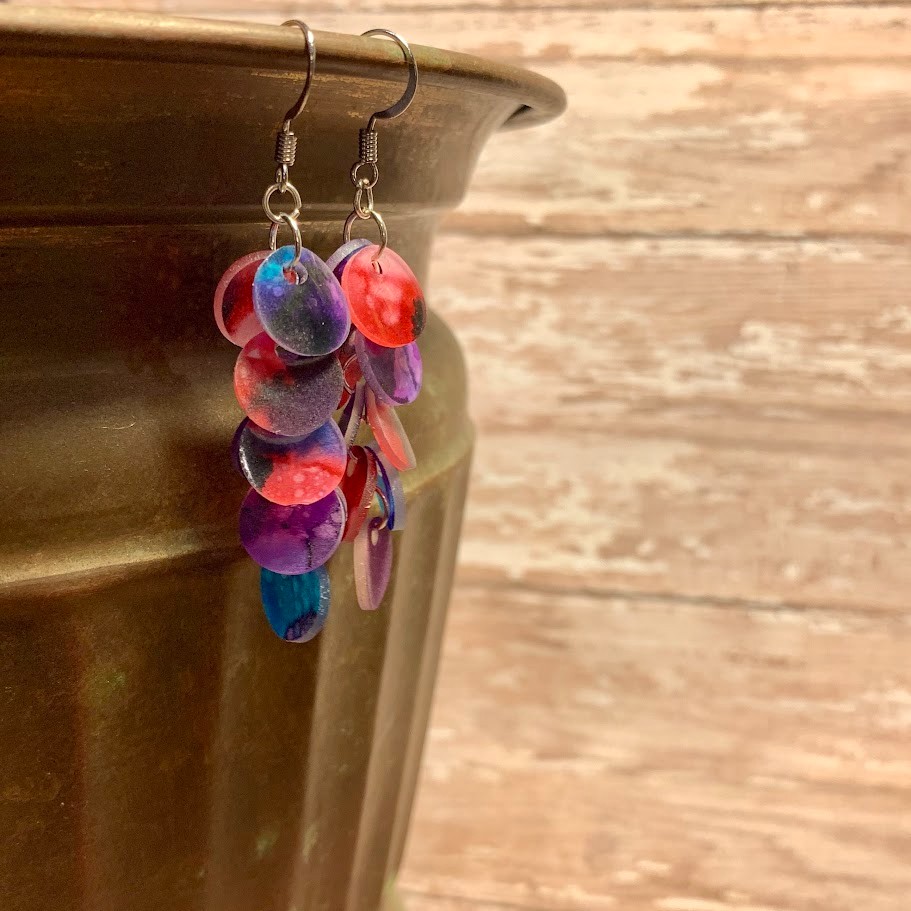 Hand-dyed acrylic bead dangle earrings (2.5in length)
