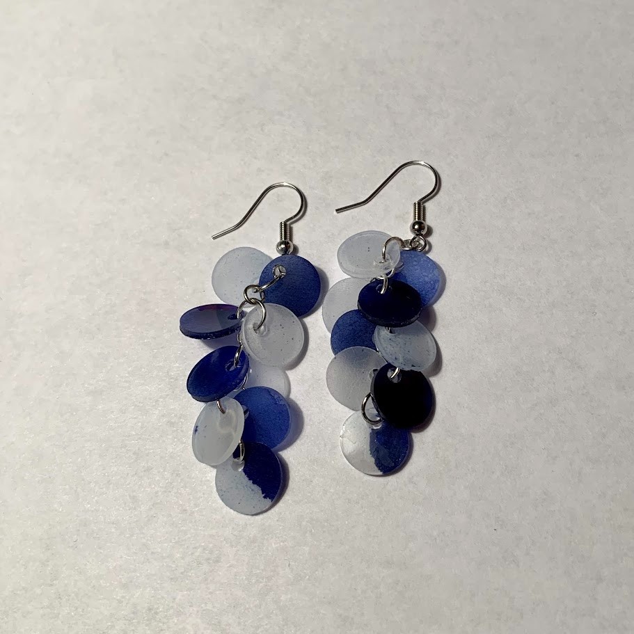 Made from hand-dyed/cut polystyrene beads. Assembled with silver-colored findings.