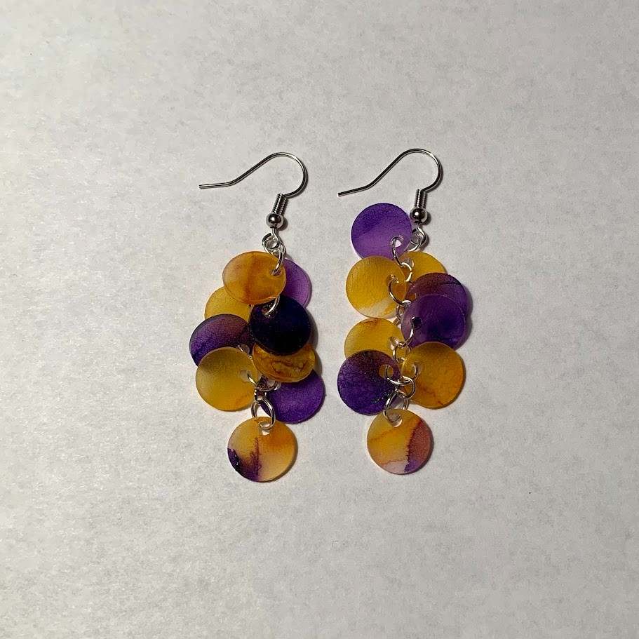 Hand-dyed plastic bead dangle earrings (2.5in length)