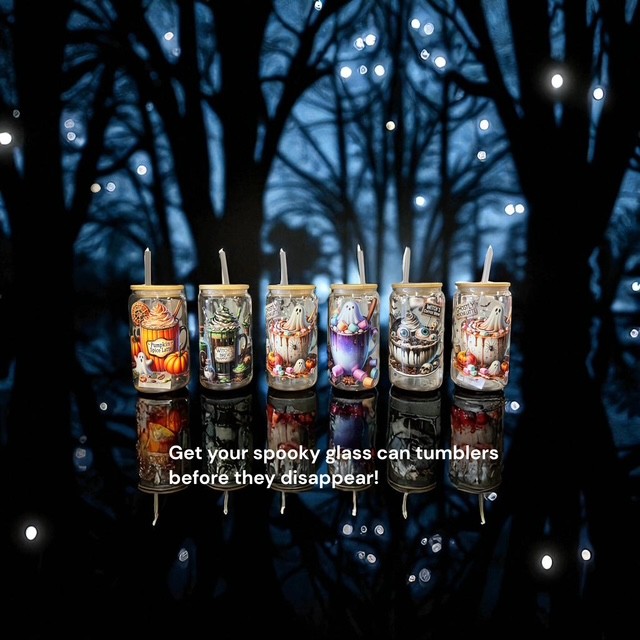 16 oz Glass Cans for Hot or Cold Drinks Made of high borosilicate glass; clear design makes mixing hot coffees or cold drinks fun! Bamboo lid with silicone insert for straw prevents leaks; designs permanently adhered with UV-DTF transfers and will not come off if treated with care. We recommend hand washing and not leaving glass soaking in dishwater for long periods of time. Silicone pad on base provides padding to glass, preventing slipping or damaging surfaces. Comes with straw and cleaning brush for straw.
