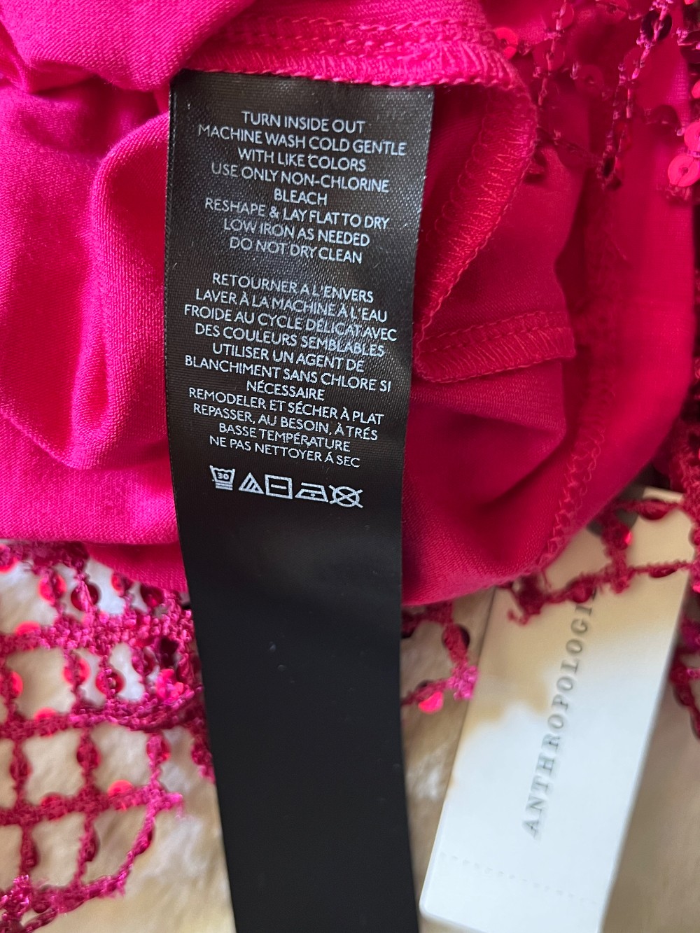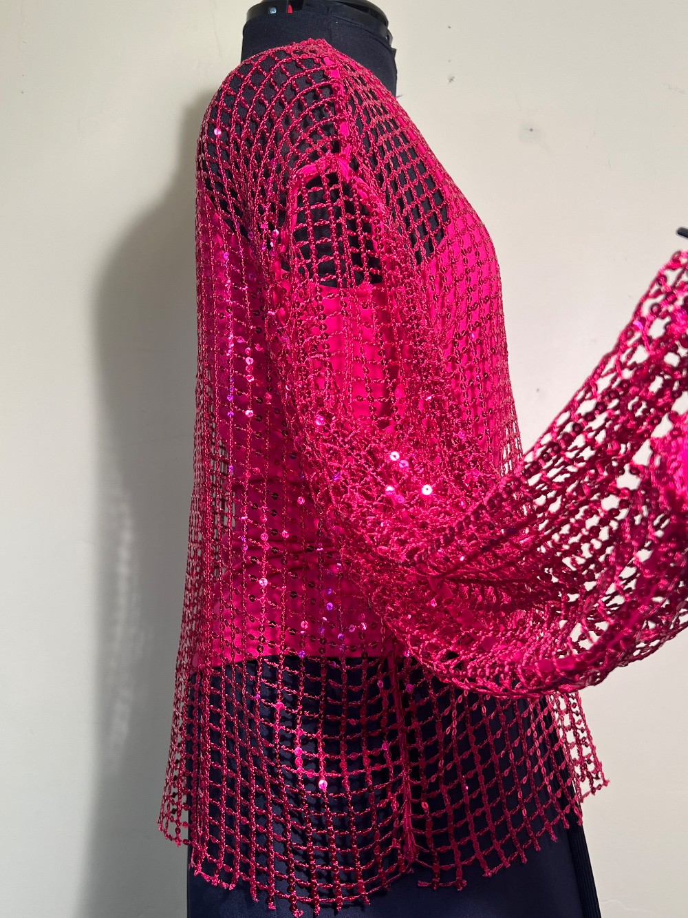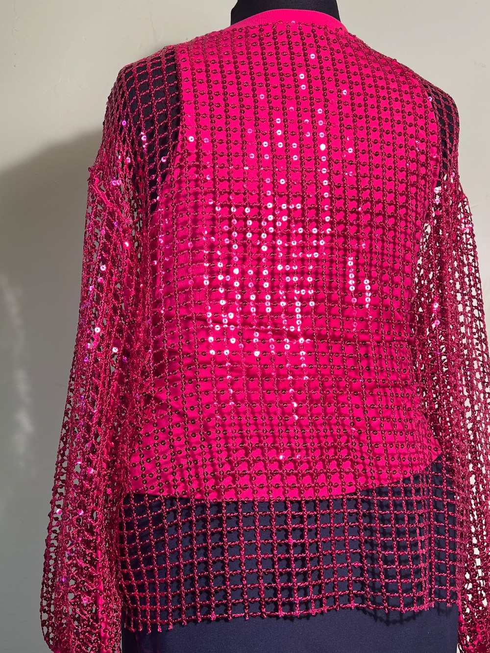 Anthropologie's Pilcro Brand Hot Pink Sequin Netting Pullover Knit. Size Medium. Now here's versatility. Wear it will satin or denim. Holiday party or out with the girls. See through arms and shoulders. Beautifully made as all Anthropologie brands are. Tee knit hot pink ribbed neck and cuffs.