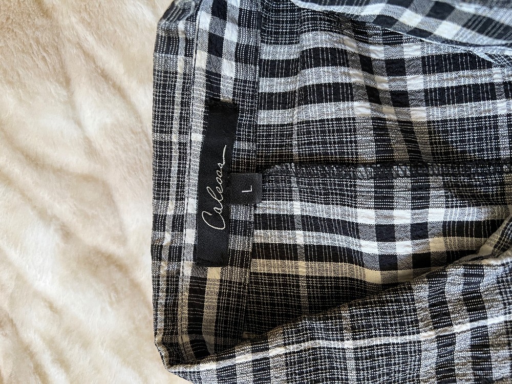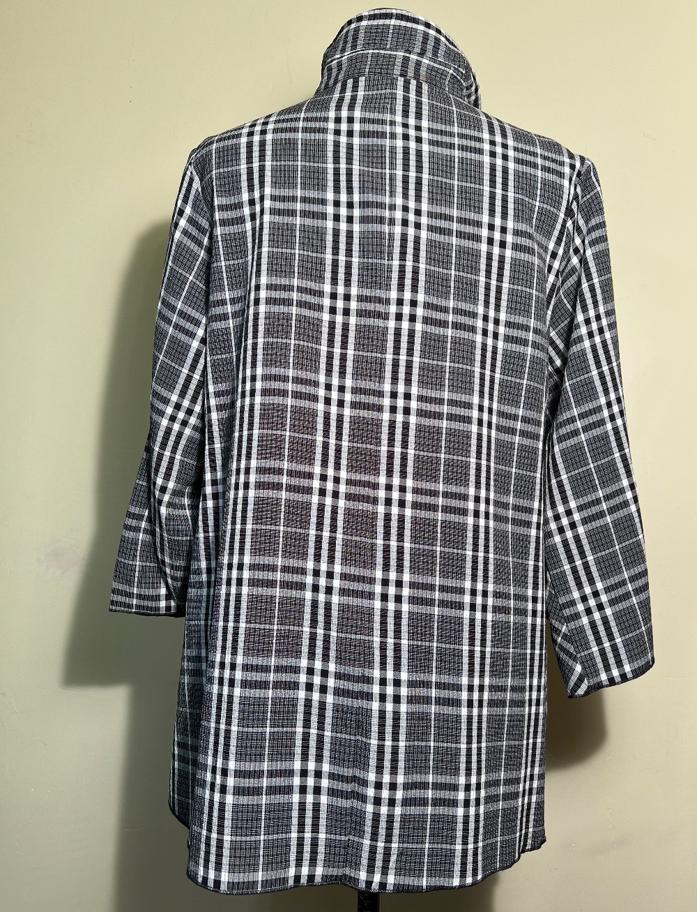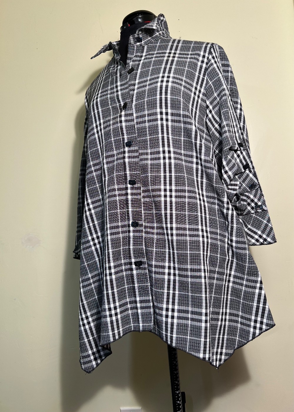 Calessa designs are so feminine and tailored at the same time. The unique sleeve details sets it apart from other casual tunic shirts. The buttons are rectangles. The fabric is light weight and breathable, but still substantial enough not to cling. Great with jeans and slim slacks. 95% Cotton. 5% Spandex.