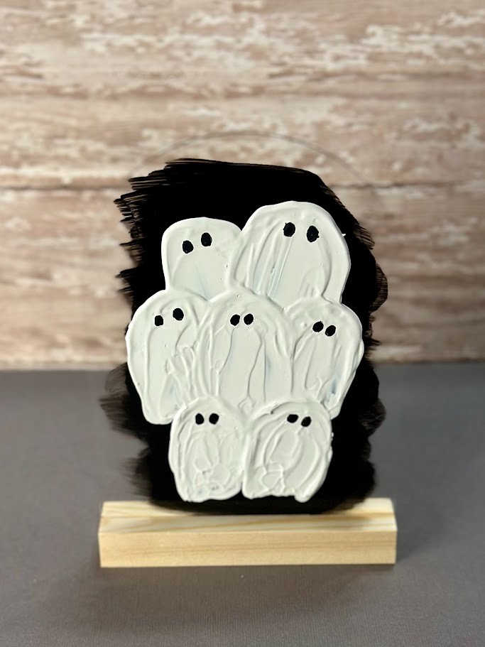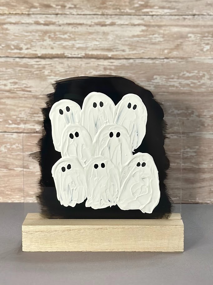 Hand-painted ghosts on arched acrylic sign. (Lg-8"w x 10"h, Med-7"w x 8"h, Sm-5"w x 7.5"h)